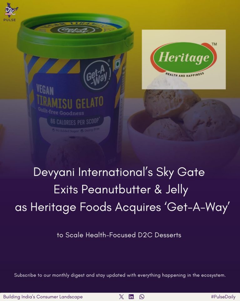 Devyani International’s Sky Gate Exits Peanutbutter & Jelly as Heritage Foods Acquires ‘Get-A-Way’ to Scale Health-Focused D2C Desserts
