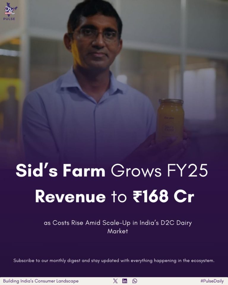 Sid’s Farm Grows FY25 Revenue to ₹168 Cr as Costs Rise Amid Scale-Up in India’s D2C Dairy Market