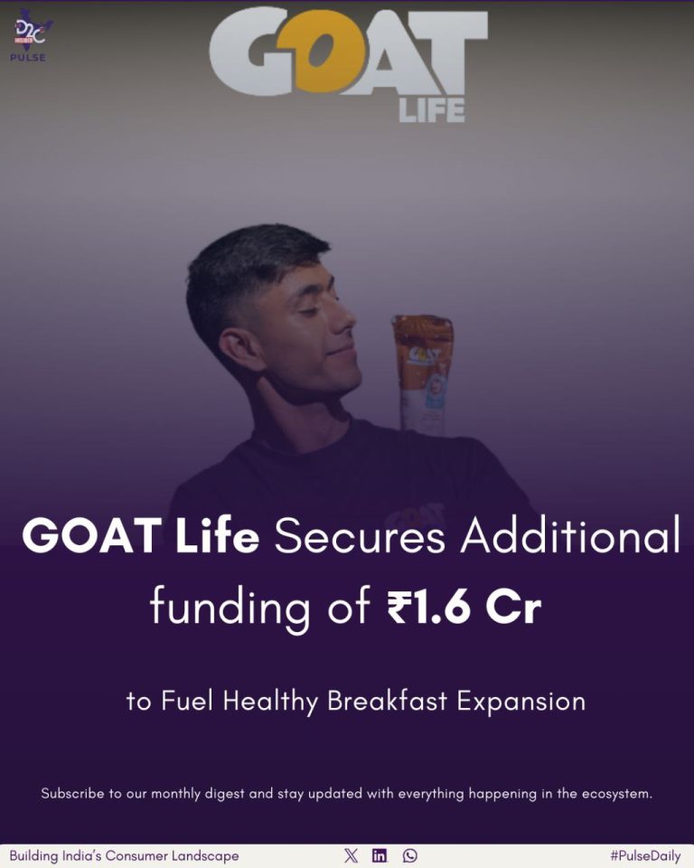 GOAT Life, a new-age breakfast brand founded by Kota’s Yash Kalra, has secured an additional ₹1.6 crore, building on its earlier ₹1.1 crore pre-seed round,...