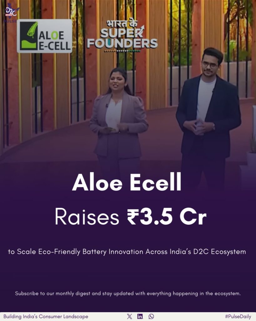 Aloe Ecell, an Indian eco-battery startup, has raised ₹3.5 crore in fresh funding to accelerate distribution and scale operations, marking a notable development in D2C news India and Indian D2C updates. The funding was secured through Bharat Ke Super Founders, a business-focused television series streamed on Amazon MX Player, which brings together founders and investors to back scalable, impact-led businesses.