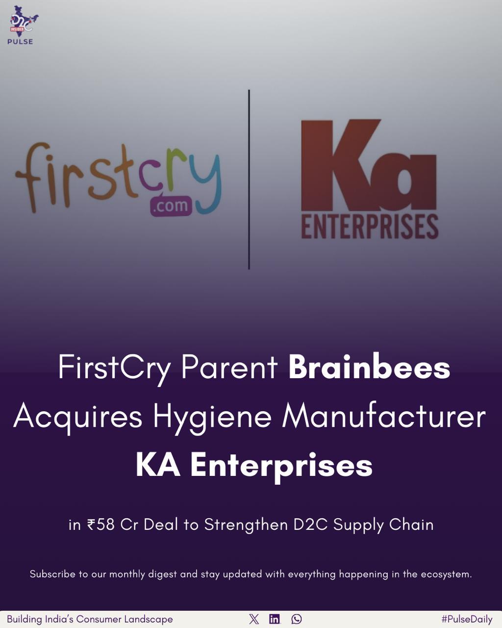 FirstCry’s parent firm, Brainbees Solutions, is further building its D2C setup by purchasing hygiene product maker KA Enterprises for about ₹57.74 crore.