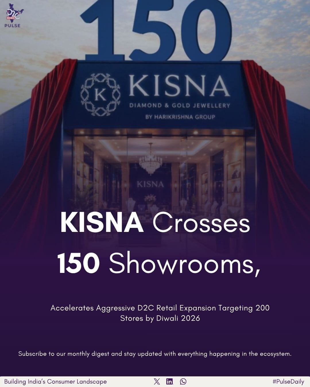 KISNA Diamond and Gold Jewellery has achieved a major milestone by crossing 150 exclusive showrooms across India, marking a significant moment in D2C news India and Indian D2C updates. The expansion, announced around Akshaya Tritiya, reflects strong momentum in the jewellery segment and highlights how legacy-backed brands are actively scaling within the D2C ecosystem India.