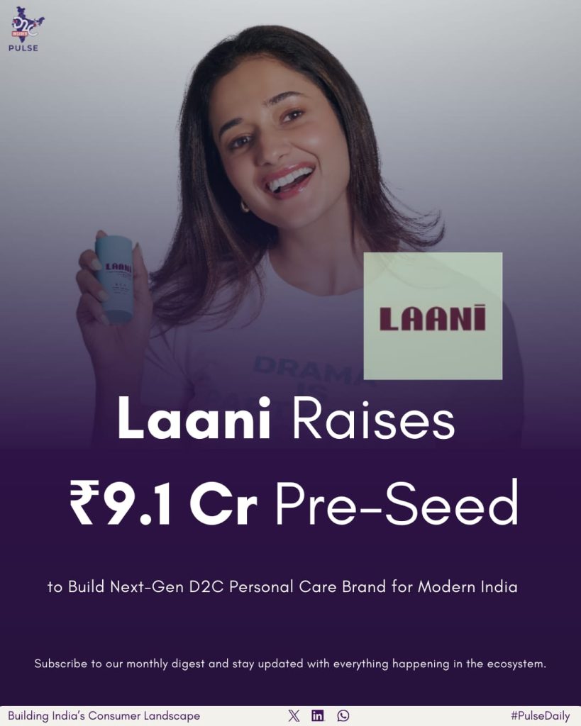 Personal care startup Laani has secured ₹9.1 crore in a pre-seed funding round led by V3 Ventures and Saama Capital. This marks an important early phase in the development of direct-to-consumer (D2C) personal care brands within India’s D2C ecosystem. The round also included contributions from notable angel investors such as Arjun Purkayastha, Manish Taneja, Kunal Bahl, and Dr. Aneesh Sheth, indicating increasing investor interest in Indian D2C ventures.