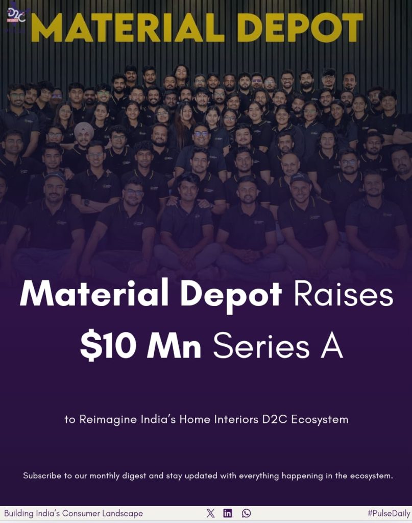 Material Depot, a startup focused on home interiors, just got $10 million in Series A funding. This is a big deal as the direct-to-consumer home and lifestyle market in India is growing fast. Accel and Stellaris Venture Partners co-led the funding round, with Whiteboard Capital, DeVC, Soma Capital, MyAsiaVC, and some angel investors also participating. The angel investors included some well-known names like Ramakant Sharma (Livspace), Ankit Nagori (Curefoods), and Shashvat Nakrani (BharatPe).