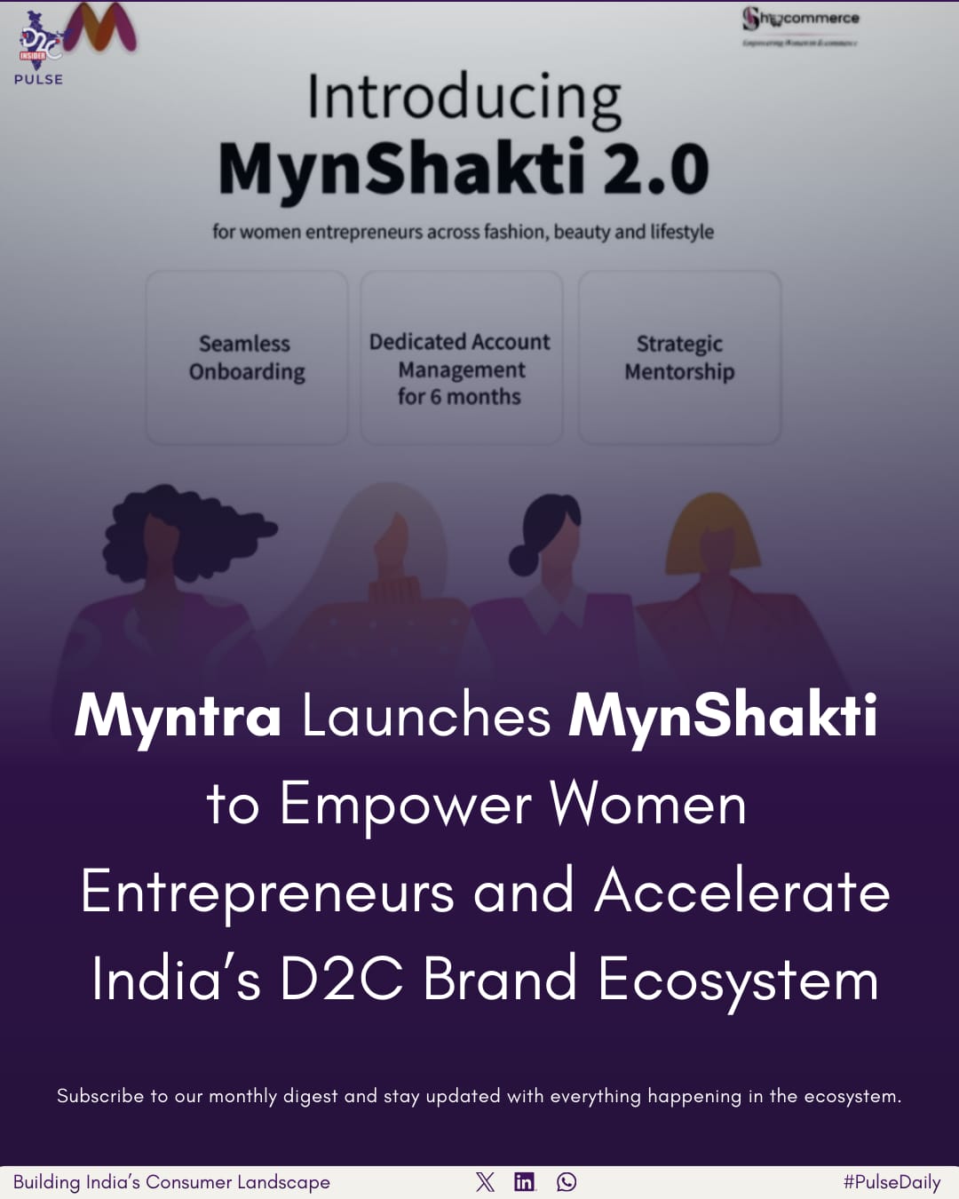 Myntra has launched MynShakti, a dedicated Women Seller Program aimed at empowering women entrepreneurs and accelerating the growth of D2C brands India within the country’s rapidly expanding Direct-to-consumer India ecosystem. The initiative marks a significant development in D2C news India and reflects how leading digital commerce platforms are actively supporting the next generation of women-led businesses across the D2C ecosystem India.