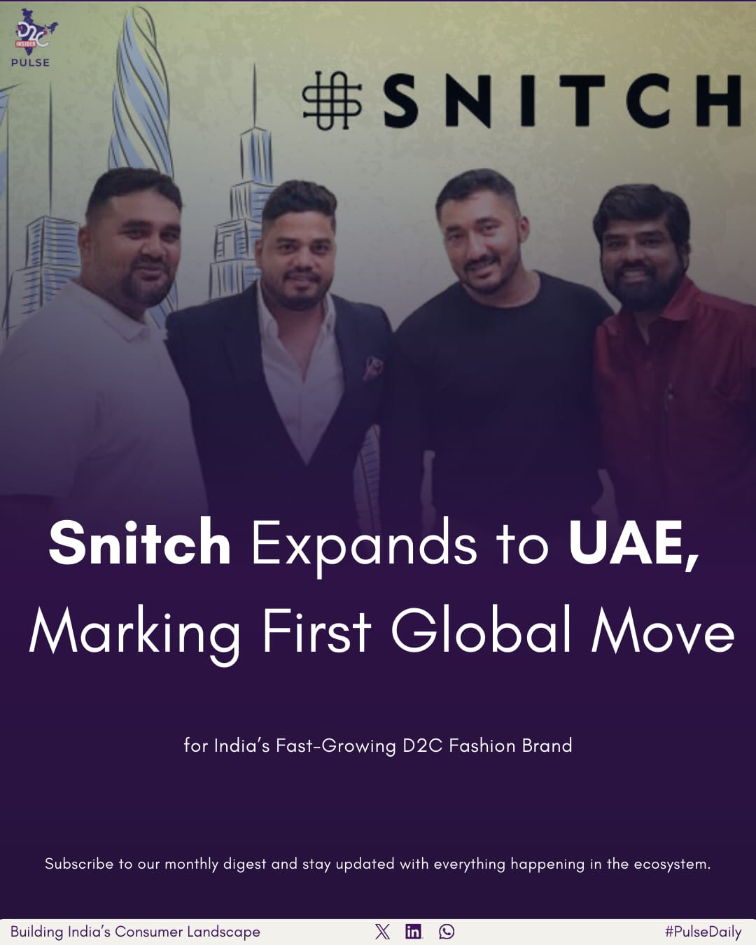 Founded in 2019 by Siddharth Dungarwal as a digital-first, Gen Z-focused venture, Snitch has evolved into one of the fastest-growing D2C brands in the Indian D2C updates landscape. Today, the brand operates more than 105 stores across India, reflecting a strong omnichannel D2C strategy that blends online scale with offline retail expansion. For those tracking D2C daily news and D2C startup news, Snitch’s entry into the UAE signals how D2C business India is transitioning from domestic growth to global ambition.
