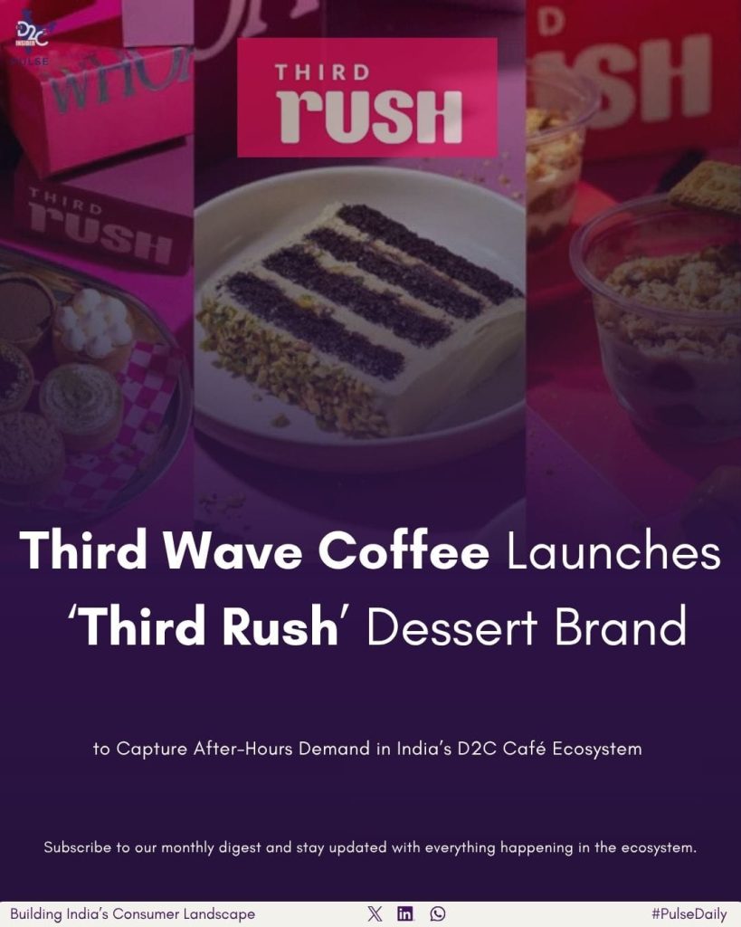 Third Wave Coffee has launched ‘Third Rush’, a new dessert-focused concept aimed at tapping into after-hours consumption and impulse-driven demand. This launch reflects evolving D2C market trends 2025 and highlights how D2C brands India are expanding beyond core offerings to drive higher engagement, ticket sizes, and consumer retention.