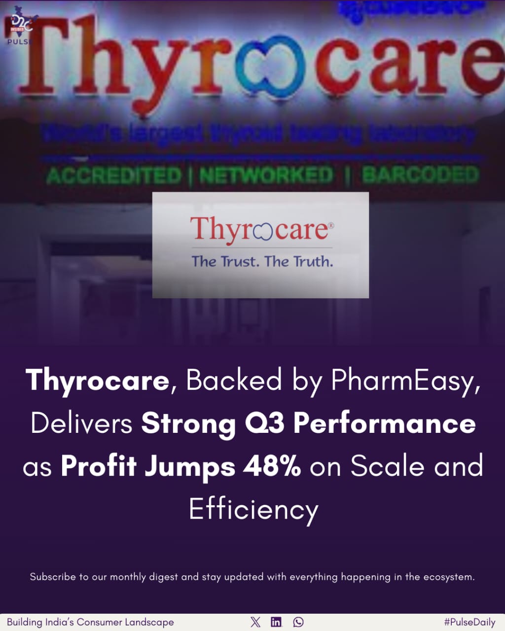 Thyrocare, owned by PharmEasy, had a great third quarter in FY26! It’s becoming a top diagnostics brand in India’s direct-to-consumer healthcare scene. Their profit went up by 48.1% compared to last year, making ₹28.1 crore in Q3 FY26. Last year, it was ₹19 crore. This increase is because they made more money, managed things well, and kept costs down.